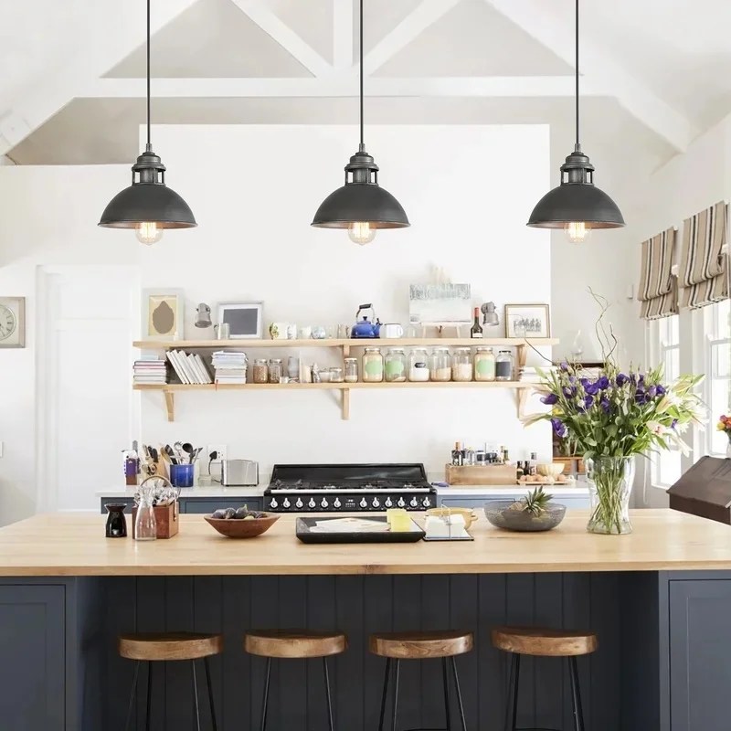 Lighting: Don’t overdue it with all the “natural wood” accents that you’re adding in. Try to stick with a black/industrial type of chandelier and pendants. It will be a lot easier to switch out holiday decor with these timeless pieces.